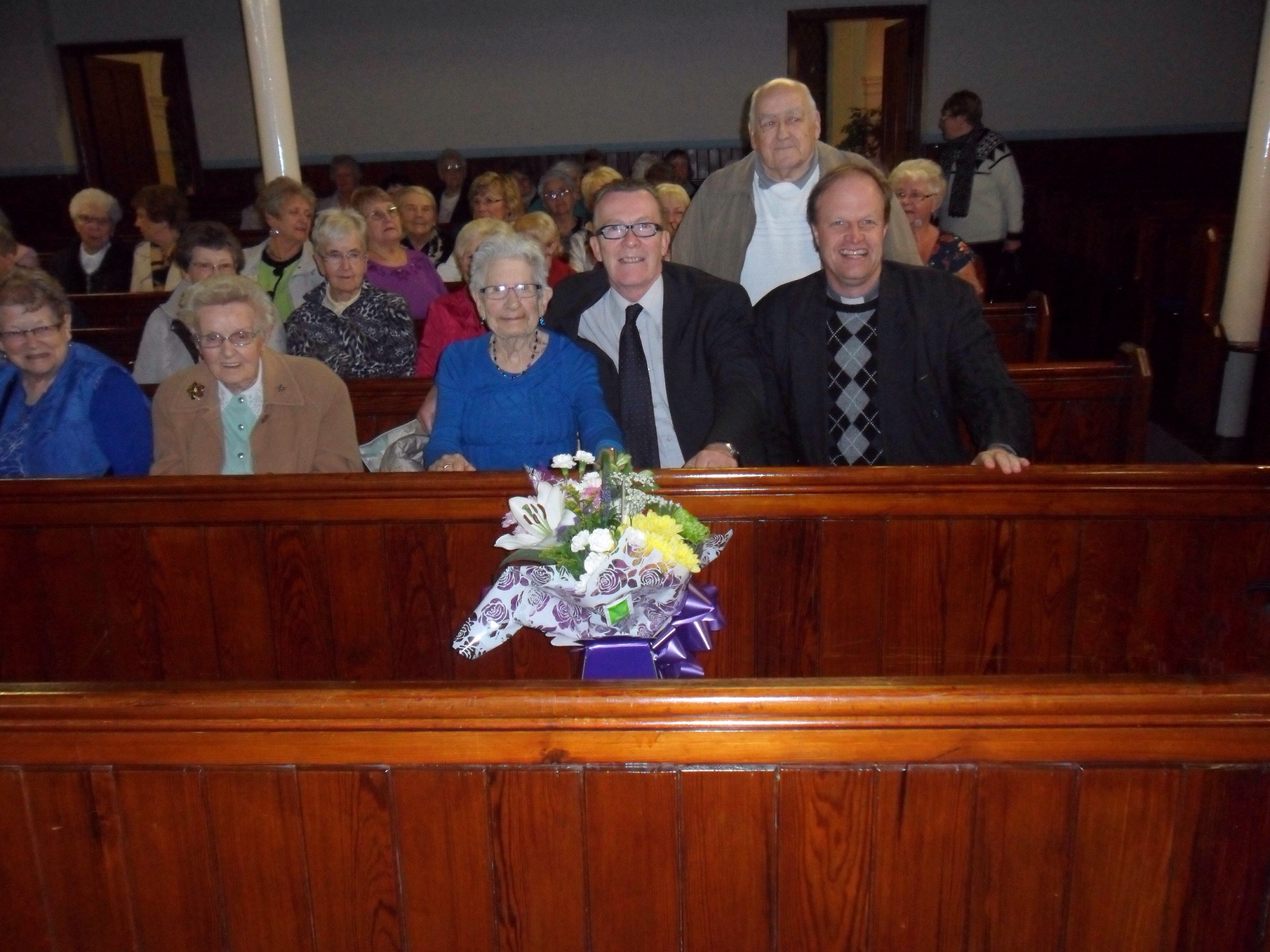 A presentation to Ellen Williamson, who was resigning from the Community Council after many years’ service took place at the commencement of the Guild Guest night on Monday evening. The presentation was made by Cllr. Harry Curran, with Tom Taylor, Duncan McLeod and Rev. Kevin De Beer also in attendance.