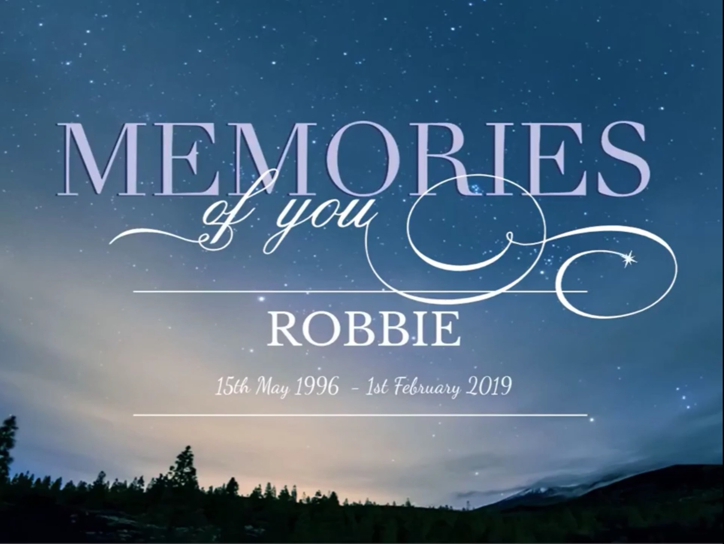 Robbie’s funeral and time for thanksgiving and remembering takes place on Friday 15th February at 10.30am within Bellshill Central Parish Church at 346 Main Street, Bellshill, ML4 1BA.