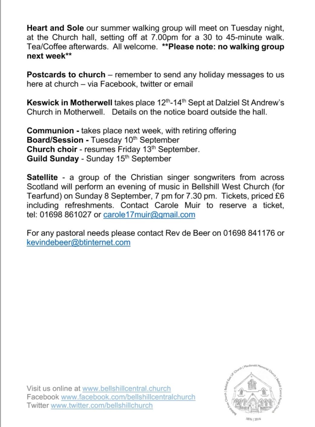 Welcome and Intimations (session clerk)