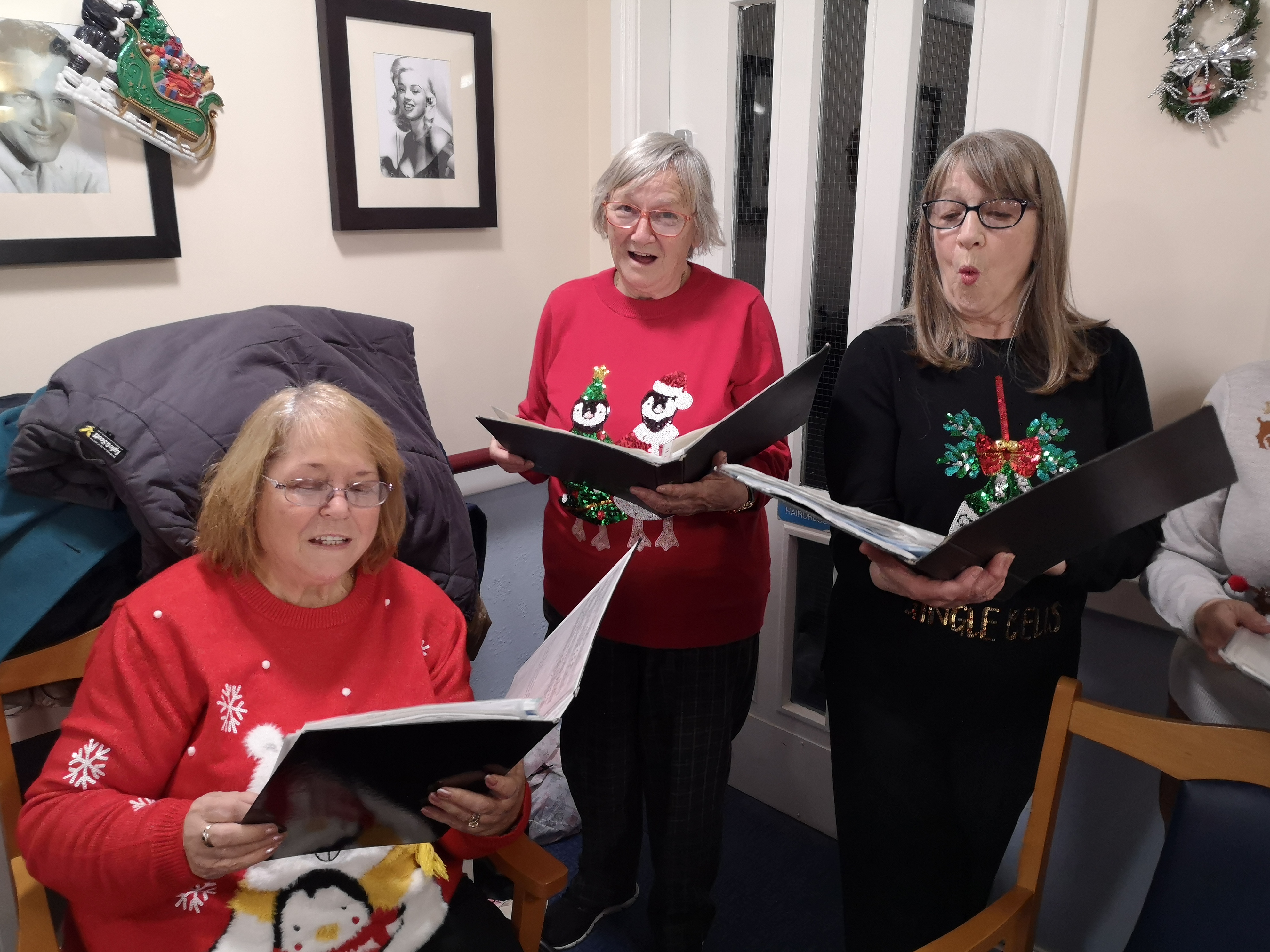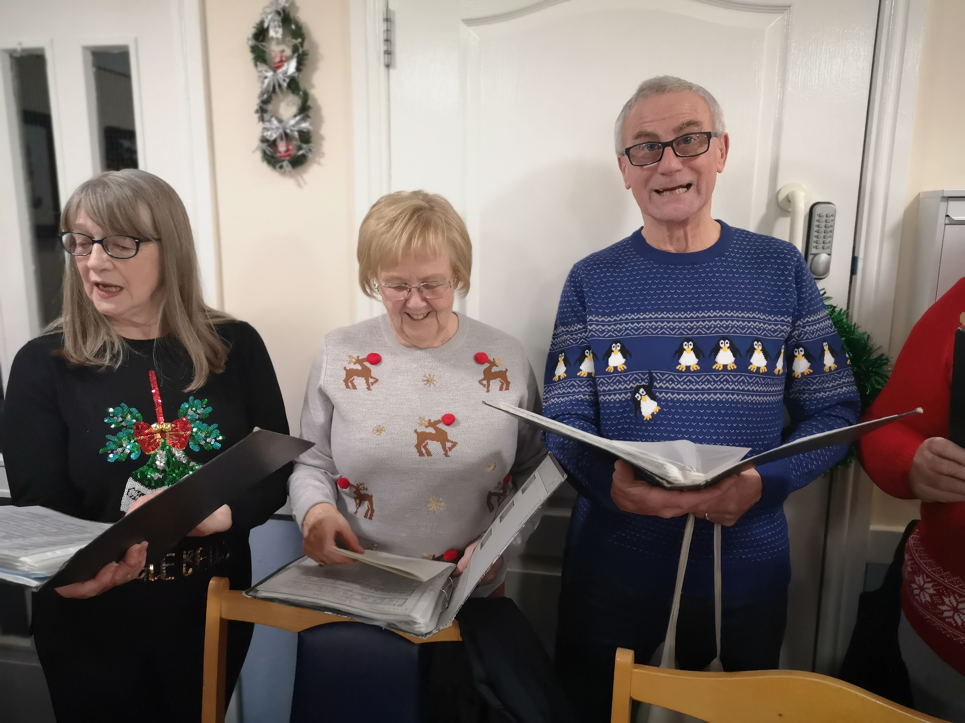 THE CHURCH CHOIR VISITED HIGHGATE CARE HOME ON THURSDAY 12TH DECEMBER TO SING CHRISTMAS CAROLS AND CHRISTMAS MUSIC. YOU CAN SEE THE SINGERS WERE ENJOYING THEMSELVES AND EVEN WORE THE FAMOUS BELLSHILL CENTRAL CHRISTMAS JUMPERS. THE RESIDENTS AND STAFF WERE REALLY GRATEFUL WE COULD COME TO VISIT.