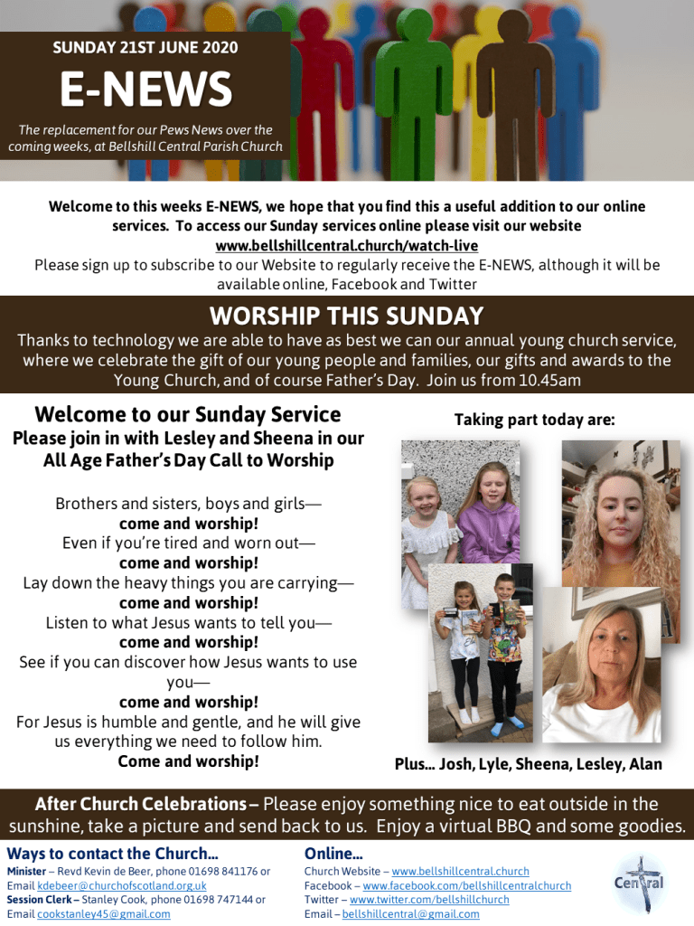 A reminder that today is Young Church Service, with the prizes and where we give thanks for young people and also remember Father’s Day.