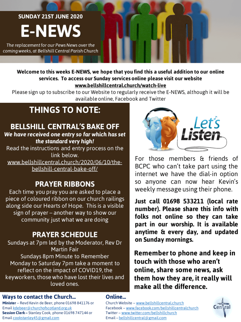Attached is the e-news – it will be emailed out by the website to those who follow it, apologies if you get it twice! But better twice than not at all! Please have a read through it. We’ve included the opening prayer and ask you to join in with it.