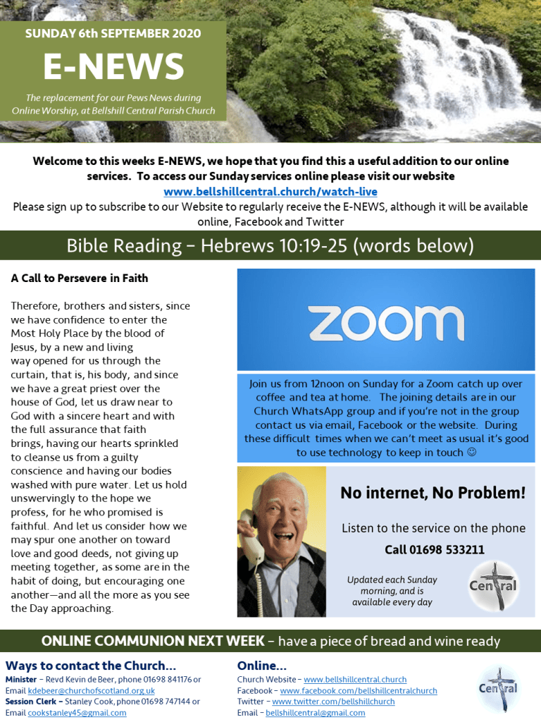 Remember we have ZOOM Tea and Coffee after church at 12.00pm, please make sure you have the joining instructions. If not please ask for them.