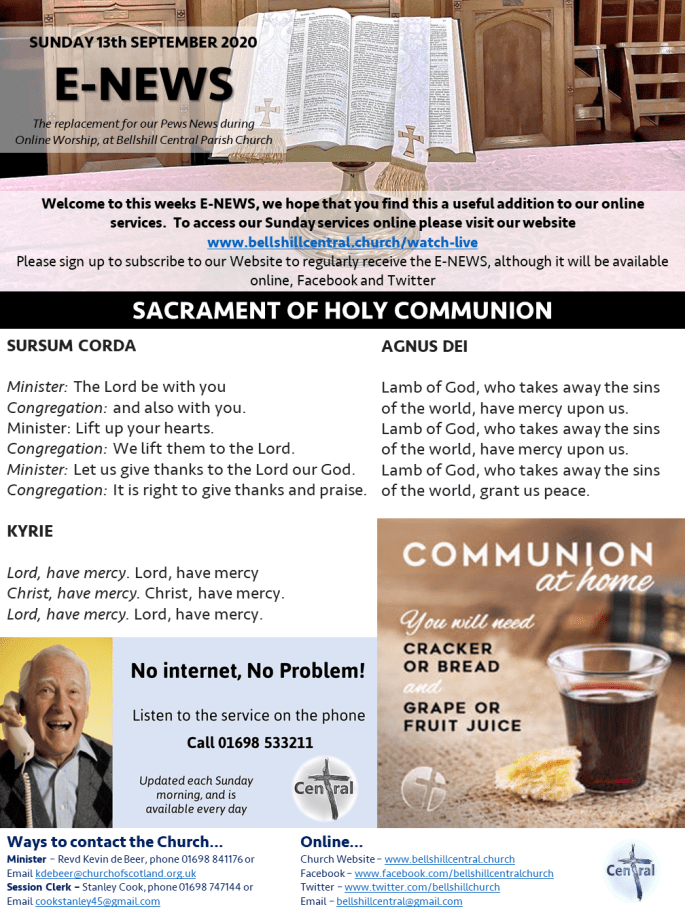 Our worship includes the Sacrament of Holy Communion, and will be led by our pastor the Rev’d Kevin de Beer. In preparation for this please have ready some bread or a cracker, and some wine or juice. Our ENEWS (below) has some prayers to recite and use during communion. Or download an order of service.