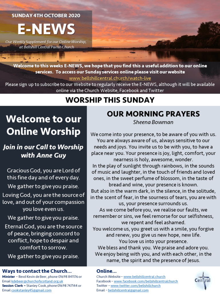 This week’s ENEWS is now available to help you in our Sunday Service for 4th October 2020. You can download the images or use the PDF link below. We hope you can join us in worship.