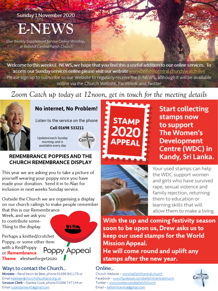 Good day, welcome to this week’s Sunday Worship service from Bellshill Central Parish Church, located right in the heart of North Lanarkshire, UK