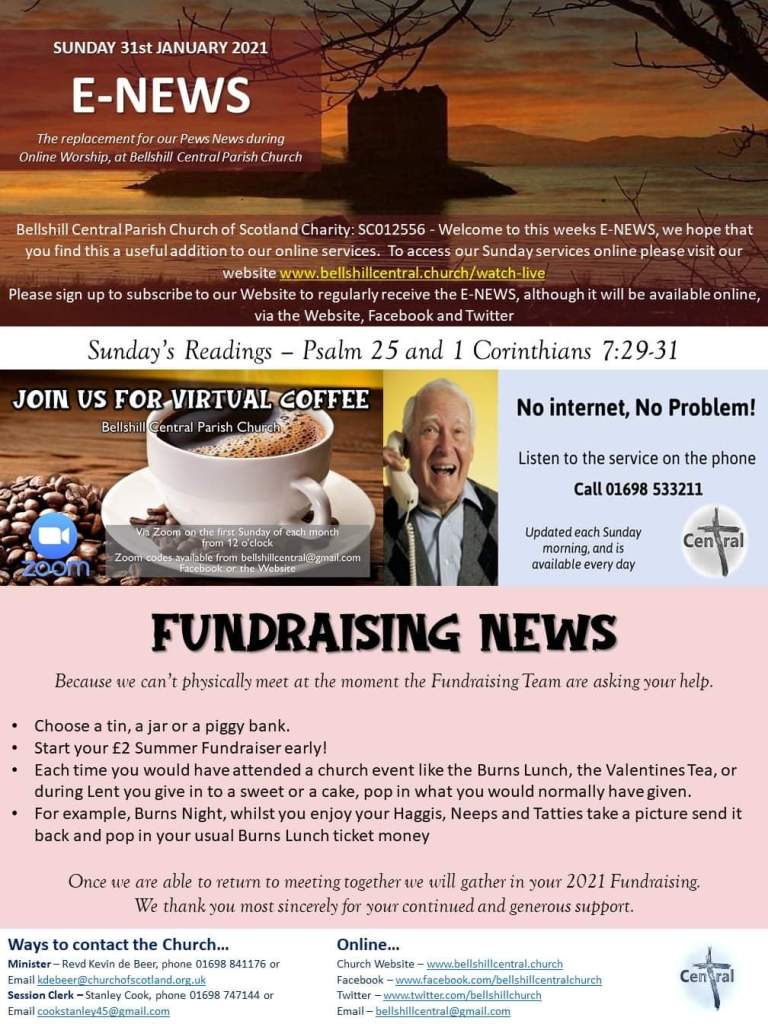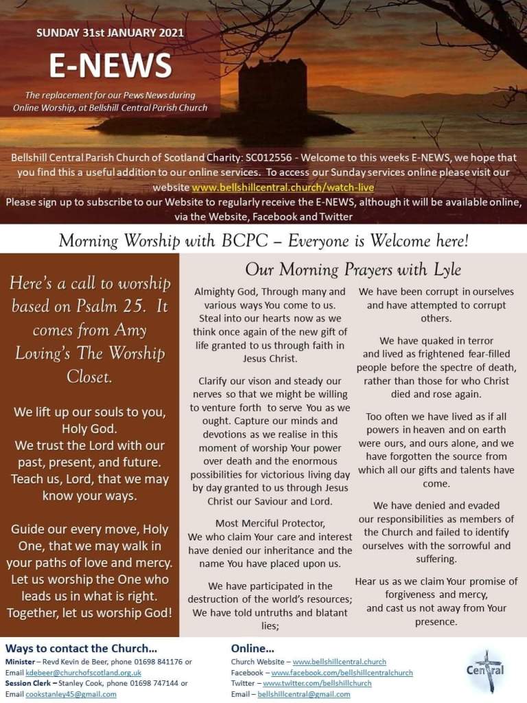 Find attached our weekly ENEWS for Sunday 31st Jan – enjoy reading the news and there are some items to prepare you for our worship. Download it here