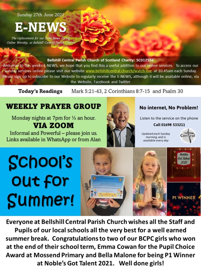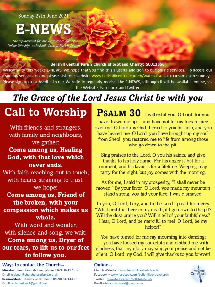 Our Minister, Rev Kevin de Beer leads us in Worship, with readings and prayers from members of our Faith community. The service is available via 01698 533211 for those not able to get online. Please share with those who might benefit.