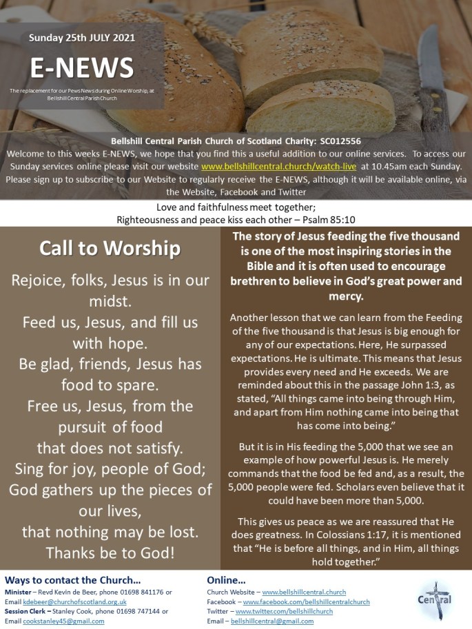 Please visit our website http://www.bellshillcentral.church for all we are doing online to spread the wonderful news of the Gospel in Bellshill and beyond Bellshill Central Church of Scotland Registered Charity: SC012556 346 Main Street, Bellshill, ML4 1BA