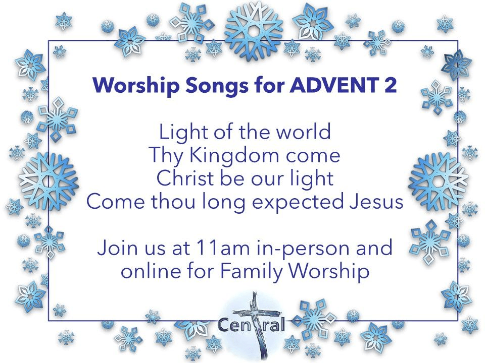 We gather for weekly worship beginning at 11.00am – The 2nd Sunday of Advent and we light our next Advent Candle