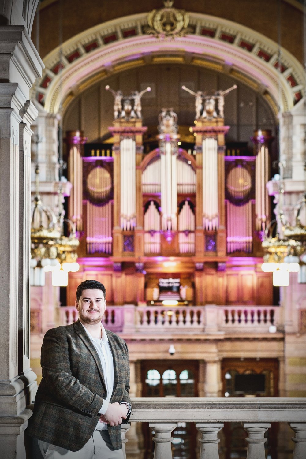 After starting his career as an organist in Motherwell Cathedral, Aaron went on to be the principal organist at St Bride’s Roman Catholic Church, Cambuslang for five years and after a family trip to the Tower Ballroom, Blackpool in his early teens, discovered his love for theatre/cinema organs.