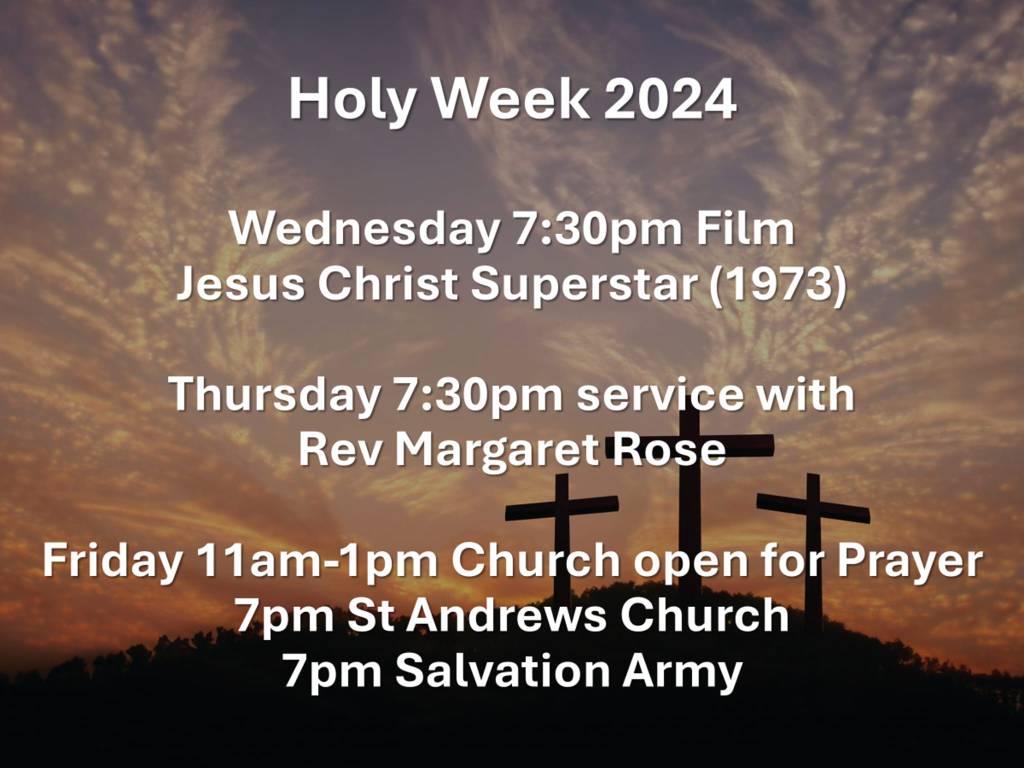 Thursday at 7.30pm Service of Communion with Rev Margaret.