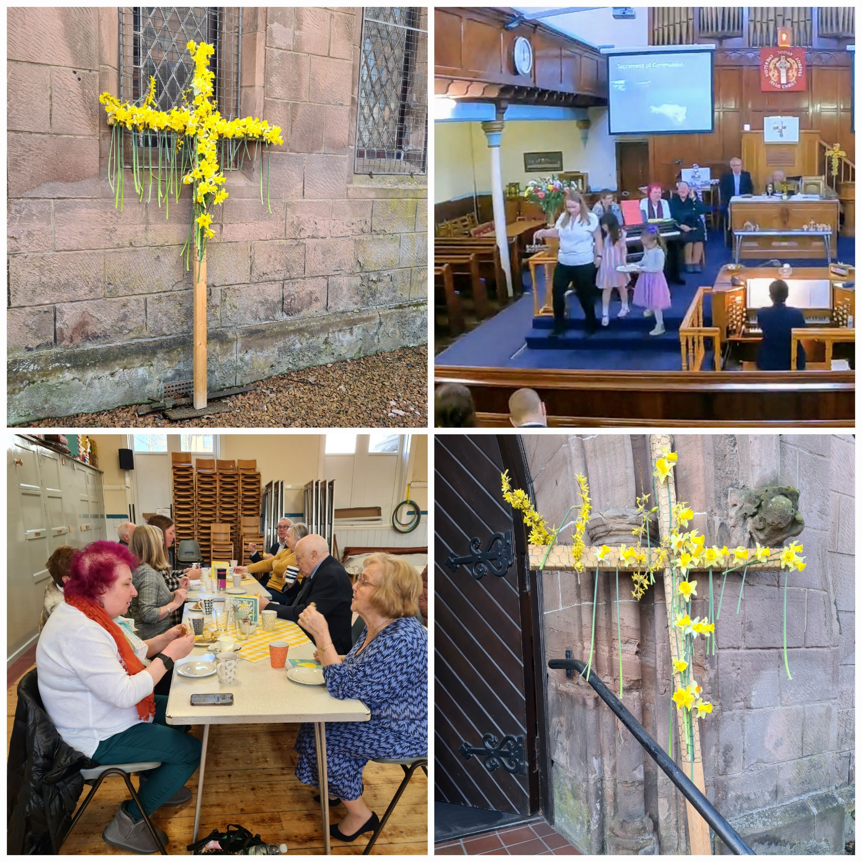 Thank you to everyone who participated in our two Easter services. Our garden service was thoughtful and reflective and led by our Church Prayer group. We began to decorate the easter cross. We then shared in breakfast in the hall afterwards, before our 11am All Age Service got underway. The Easter Cross was decorated further as other worshippers came along.