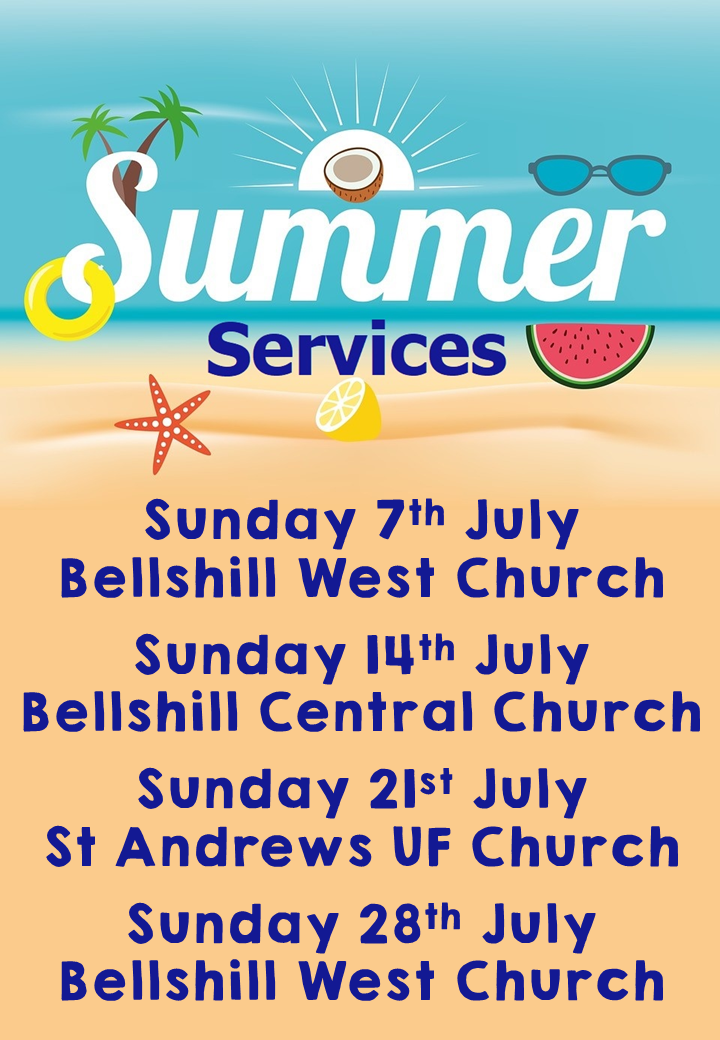 We wish everyone a safe and enjoyable summer break. May God’s Blessings be with you. Normal Sunday services return to the churches in Bellshill on Sunday 4th August. A warm and heartfelt invitation is extended to all to come to