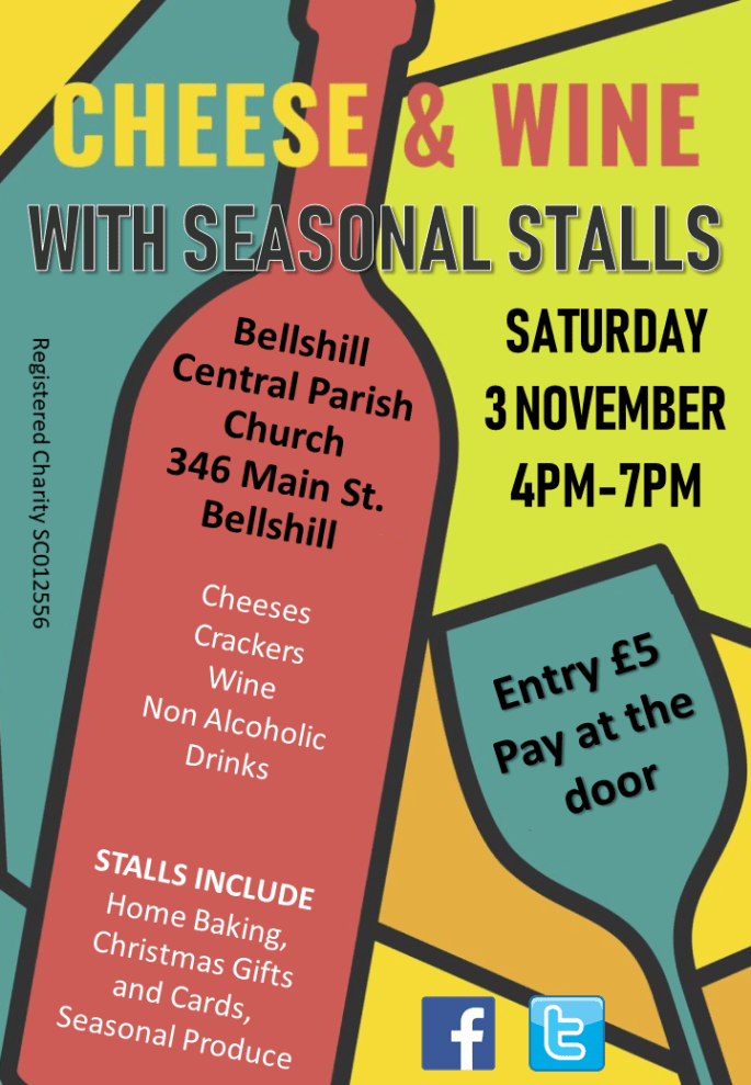 Our Cheese and wine night takes place this Saturday, 3rd November, from 4pm – 7pm. Please do come along to the Church Hall at 346 Main Street.