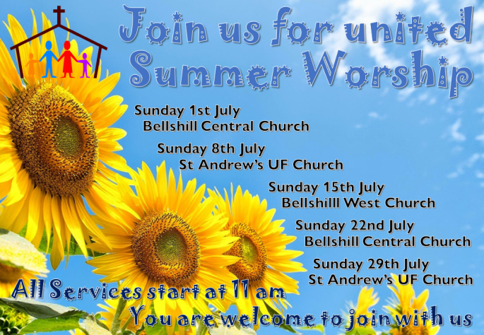 All services start at 11.00am in each church. Tea will be served after each service that is held in Bellshill Central Parish Church.