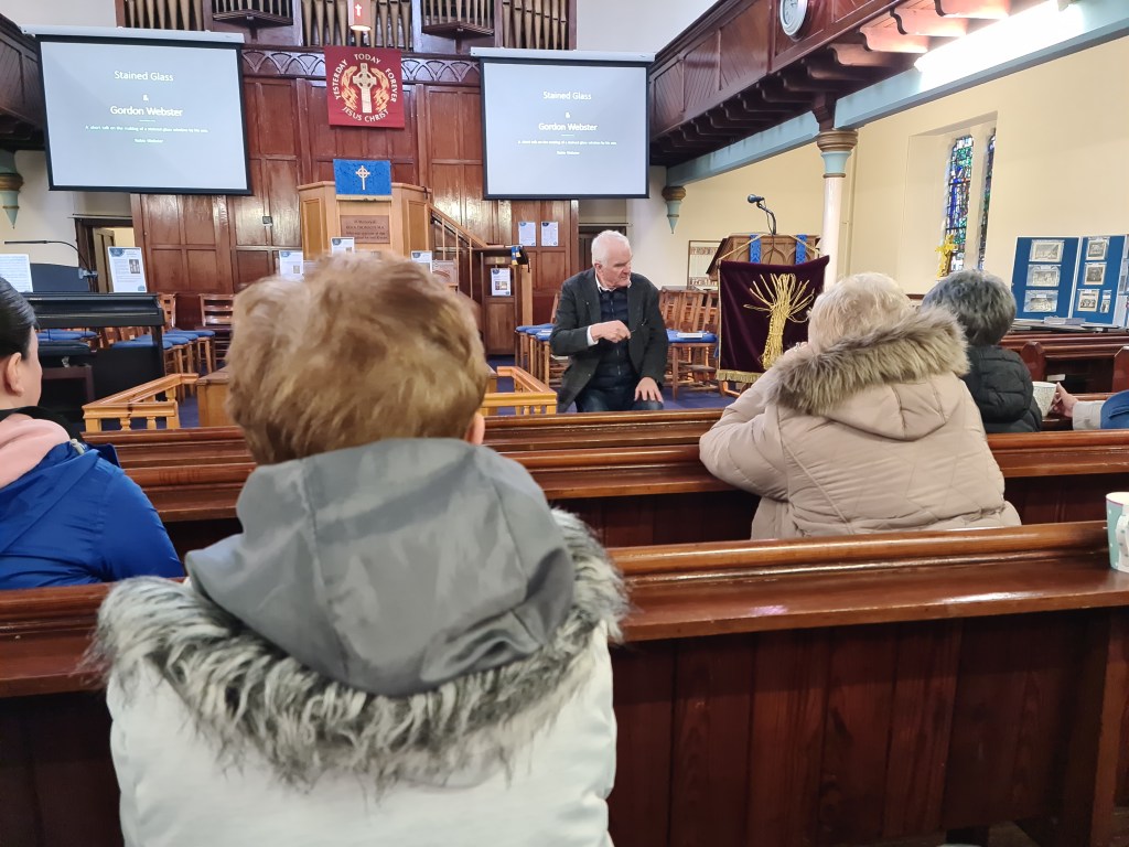 We were thrilled to have Profession Robin Webster give us a fascinating presentation on his father’s work, and on our own fine collection of Arts and Crafts stained glass windows.