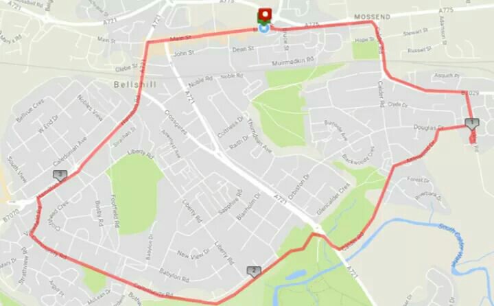 A 4-mile route leaving the Church is shown below if you want to walk around our Parish of Bellshill Central. The route (below) is a moderate route with a steeper section once you cross Motherwell Road at the Calder Bridge along Community Road.